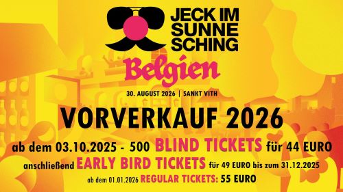 Nach dem erfolgreichen Auftakt im vergangenen Jahr kehrt Jeck im Sunnesching St. Vith 2026 zurück. Auf dem Gelände des Triangel erwartet euch wieder ein ganzer Tag voller kölscher Lebensfreude, Festivalstimmung und regionaler Besonderheiten. Welche Bands werden auf der Bühne stehen?